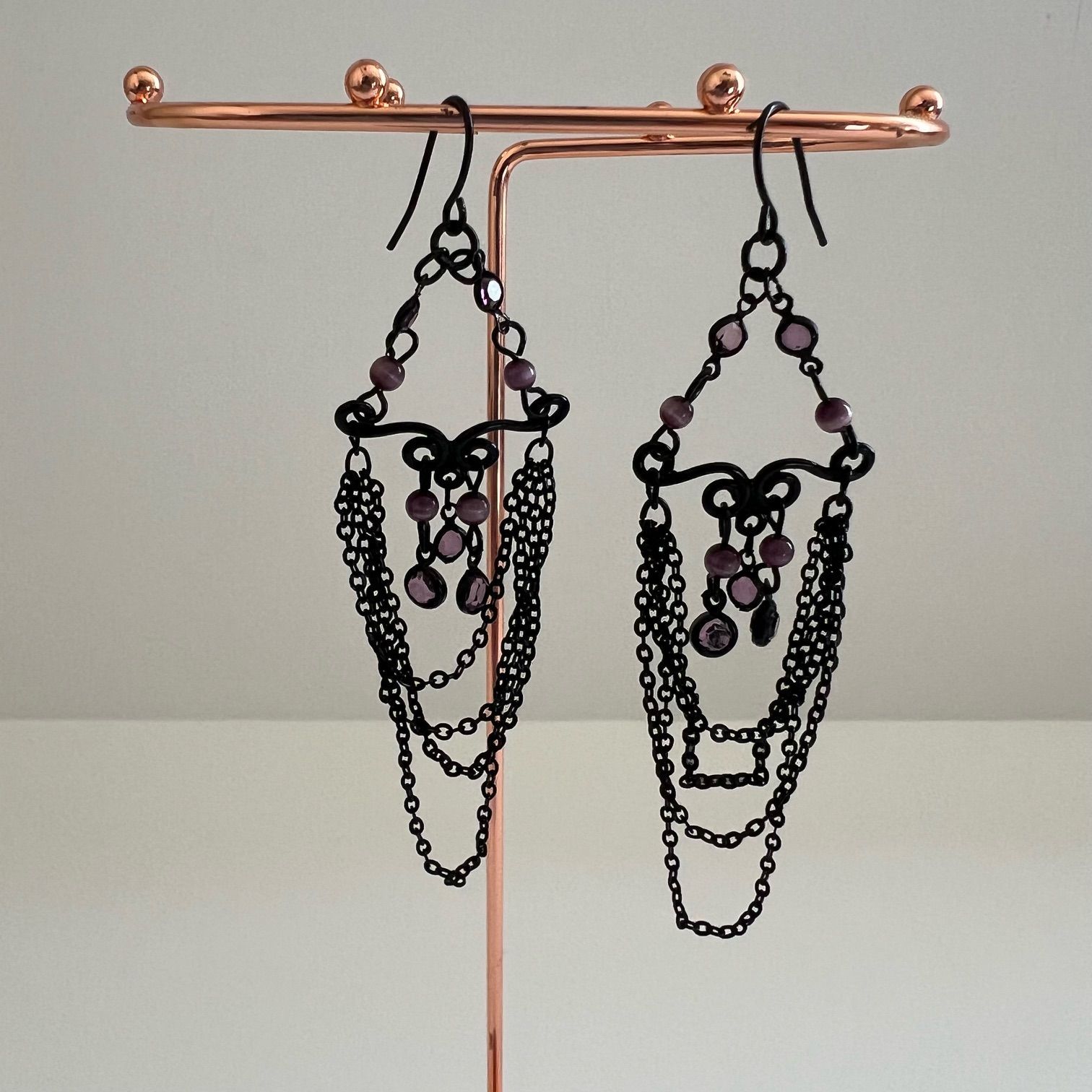 Chandelier Earrings in Black and Violet