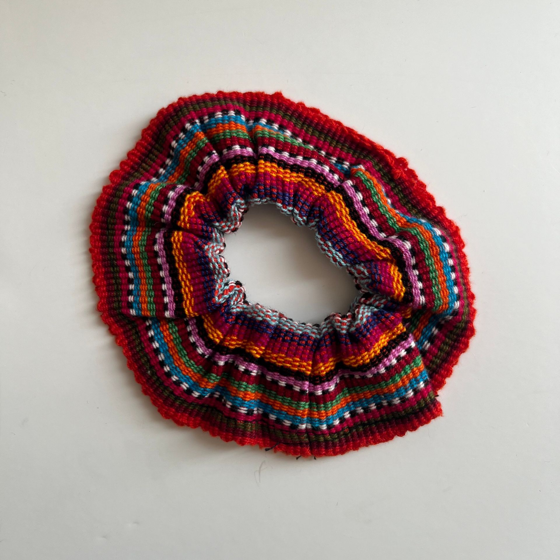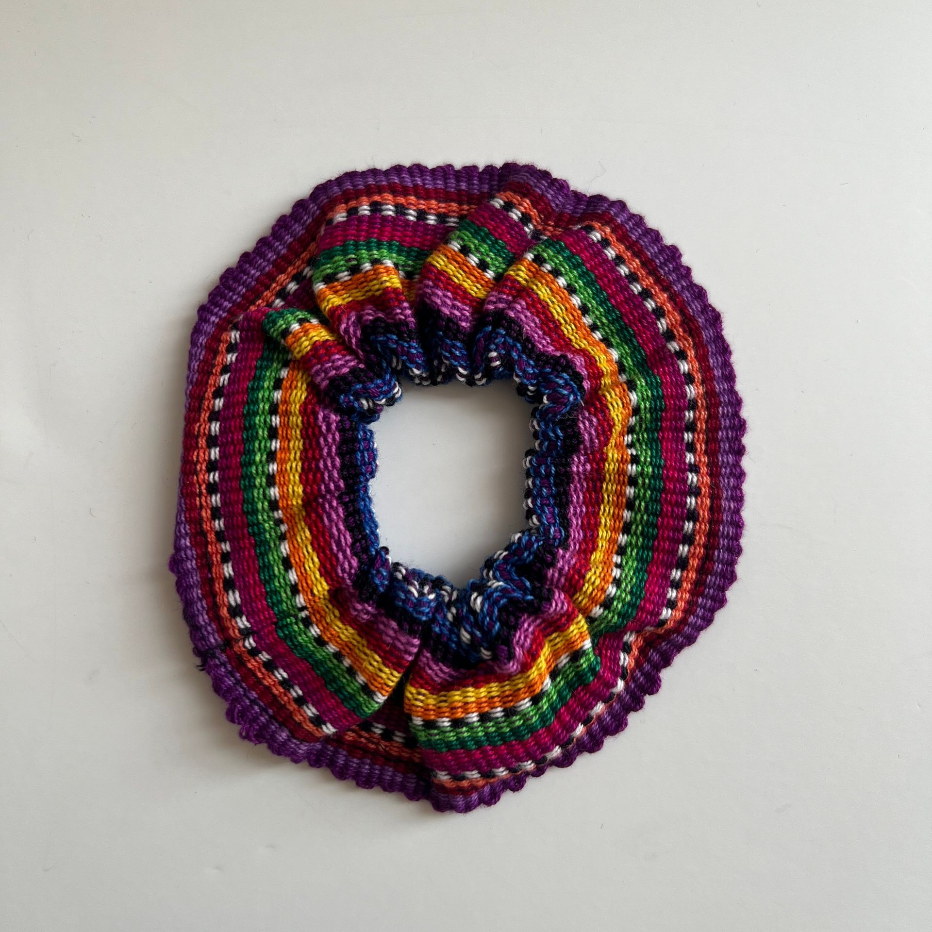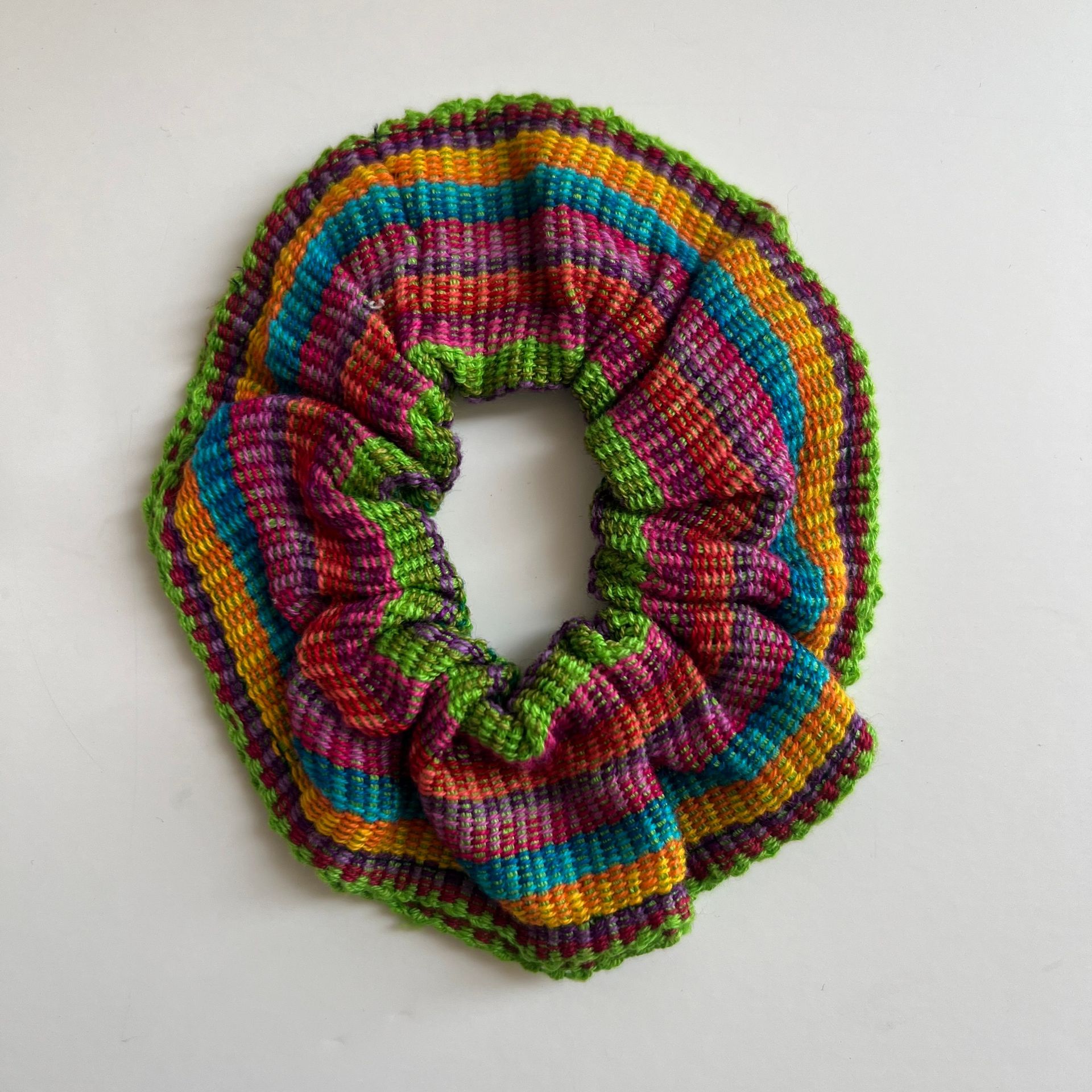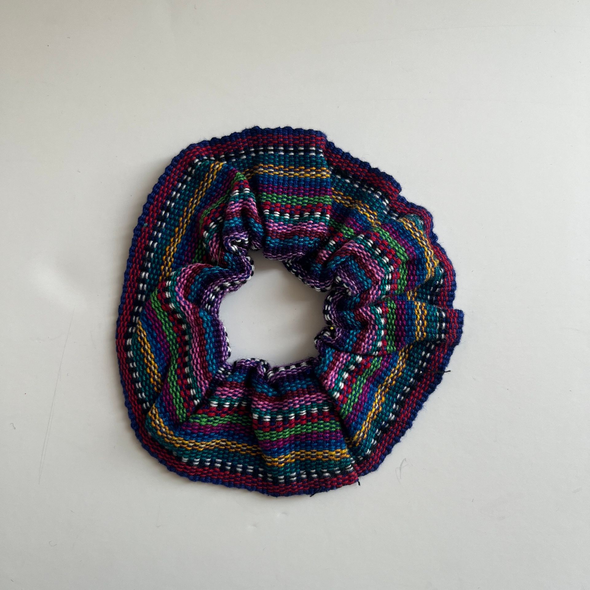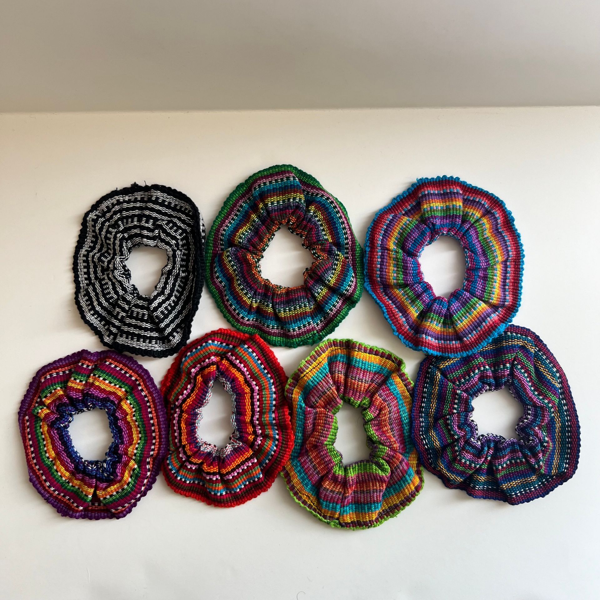 Fun and colorful scrunchies made with beautiful woven fabrics.